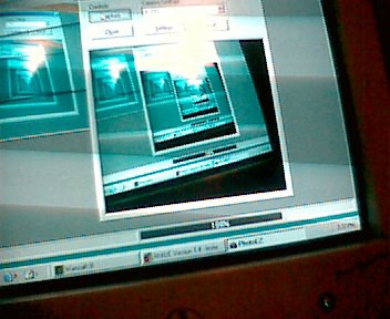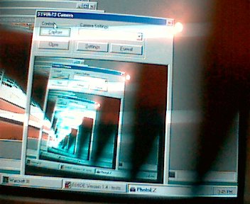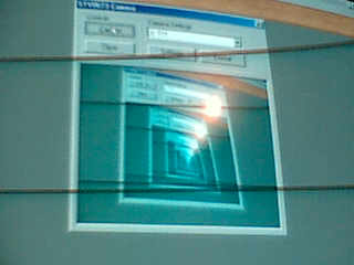 Until you realize that every image isn't exactly the same... Each image is what happened in the frame previous to the one being filmed, and each is finite... Just like when you look in a mirror, and it mimics your actions... or you look in a group of mirrors, each one of the states is in a different time. You don't notice it because light is so incredibly fast. Now this camera is slow... so I was rocking the camera and noticed the screen sorta bended... You may or may not get it from this picture: